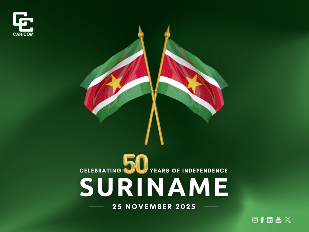 (CARICOM Secretariat, Turkeyen, Greater Georgetown, Guyana) – The Caribbean Community (CARICOM) has congratulated Suriname on its Fiftieth Anniversary of Independence, recognizing the deep bonds of friendship and cooperation that the Community shares with the country.