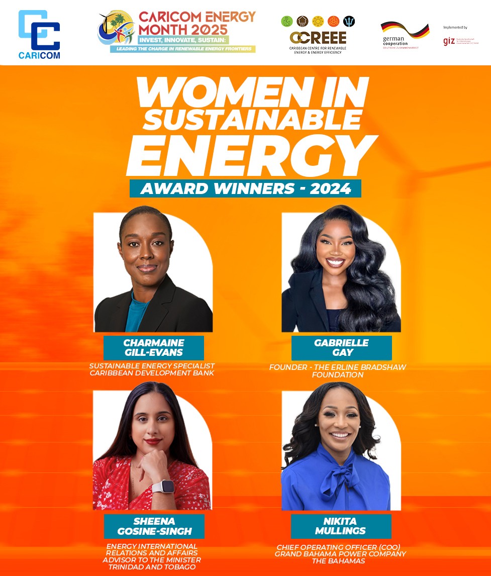 The WISE awardees for 2024 are: Sheena Gosine-Singh, Energy International Relations and Affairs Advisor to the Minister of Energy and Energy Industries, Vice Chair Wind Energy Steering Committee of Trinidad and Tobago, won in the Policy and Regulations category; Charmaine Gill-Evans, Sustainable Energy Specialist, Sustainable Energy Unit, Caribbean Development Bank, Barbados, was recognised for her work in Business, Entrepreneurship and Finance; Gabrielle Gay of Barbados, Founder, The Erline Bradshaw Foundation, won in the Social Impact, Community and Advocacy category; and Nikita Mullings, Chief Operating Officer, Grand Bahama Power Company The Bahamas won in the Utilities and Industry category.