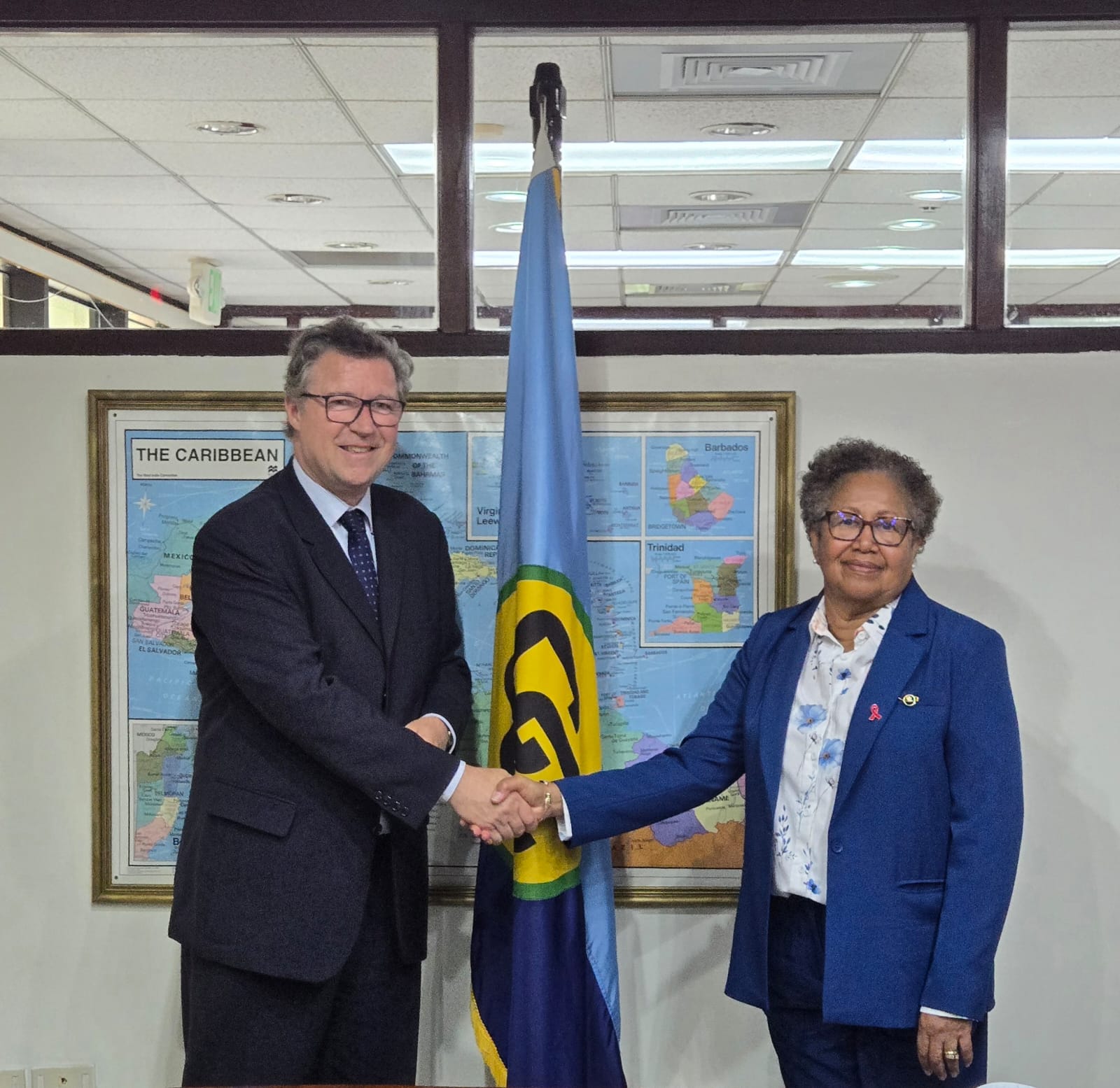 (CARICOM Secretariat, Turkeyen, Greater Georgetown, Guyana) – Secretary-General of the Caribbean Community (CARICOM), Dr. Carla Barnett, on Tuesday, 21 April, welcomed the State Secretary of the Federal Republic of Germany, Dr. Géza Andreas von Geyr, for a courtesy exchange during his visit to Guyana.