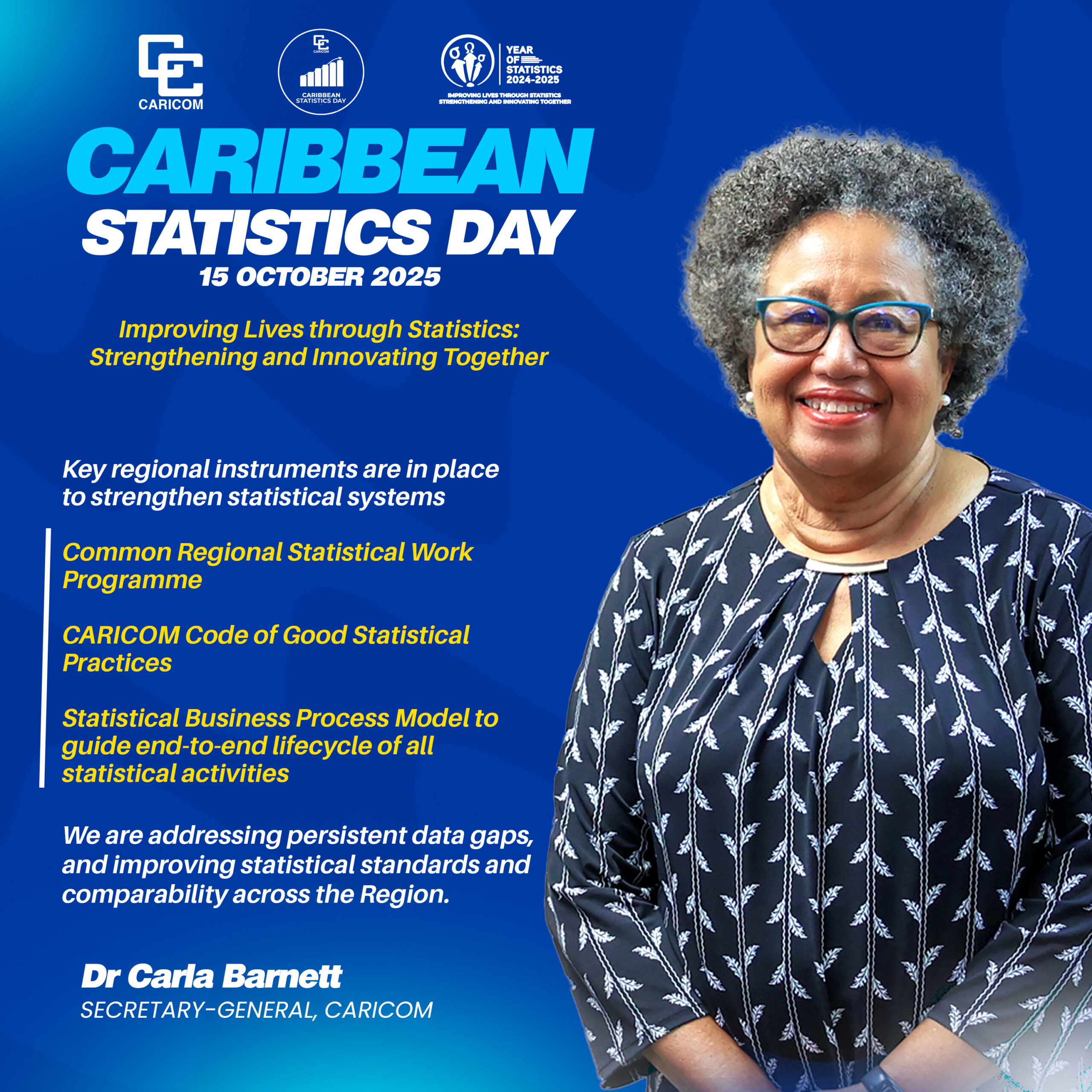 Caribbean Statistics Day on 15 October 2025 coincides with the culmination of the 2024-2025 Year of Statistics in CARICOM, which marked the Fiftieth Anniversary of the Standing Committee of Caribbean Statisticians. This jubilee milestone year highlights the importance of statistics in shaping the development and resilience of CARICOM.